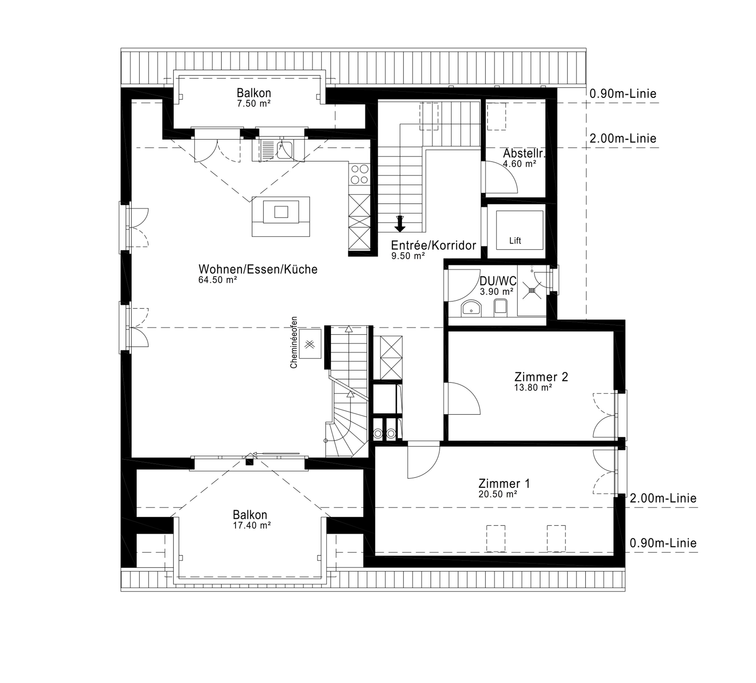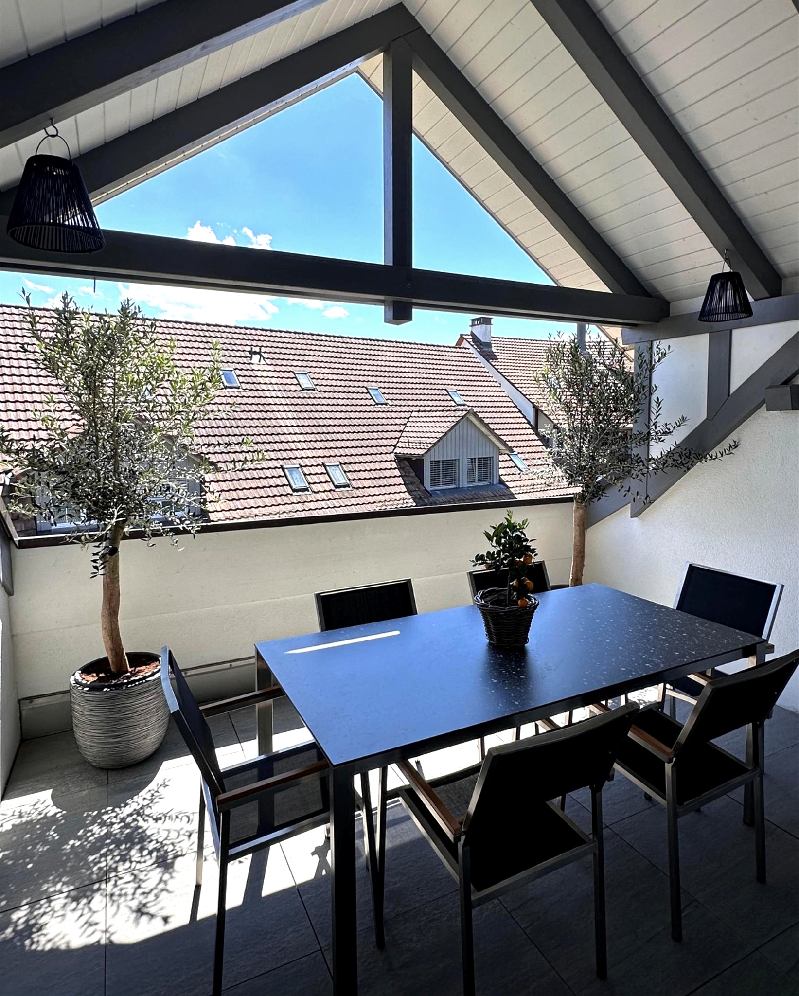 Ein angenehmes Wohngefühl wird im Feldblick Refugium durch ein Zusammenspiel von gehobenen Komfortmerkmalen wie Fussbodenheizung und hohen Decken erreicht. Der Zugang mit direktem Aufzug sowie ein privater Keller tragen zur Bequemlichkeit in der täglichen Nutzung bei. Der Kamin sorgt für Wärme und Gemütlichkeit an kühlen Abenden.